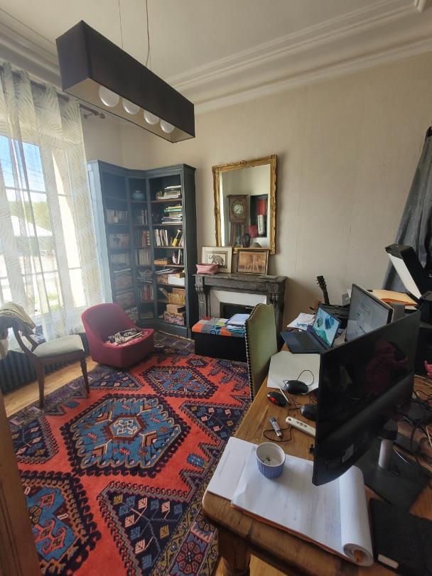 Rez de chaussée : entrée, salle de séjour-salon avec cheminée insert, cuisine aménagée / équipée, bureau, wc.